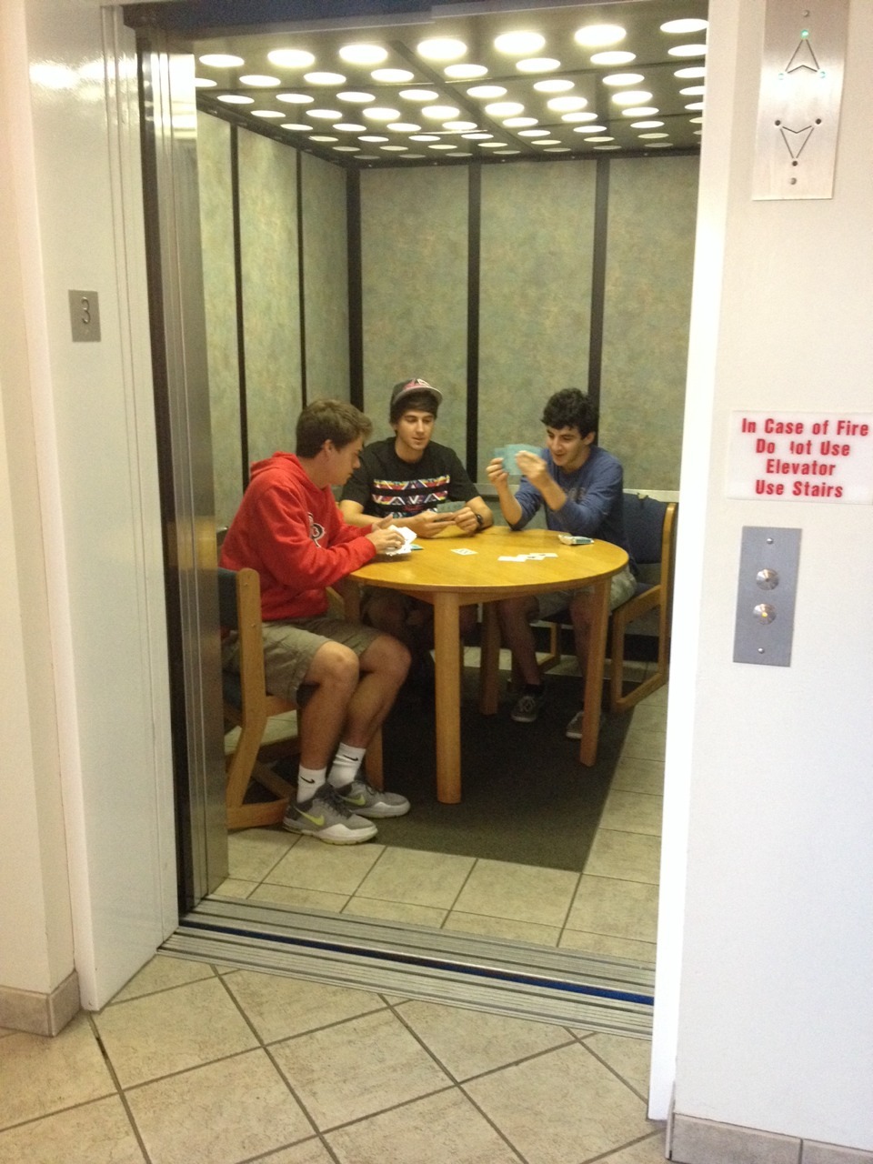 there are guys in my dorm who decided to play cards in the elevator