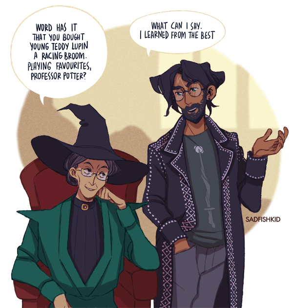 Luna on long explorations of far-off places where she can’t really Floo much less come back for a weekend visit and Ginny getting slowly grouchier and she gets whatever the equivalent of being in the penalty box for excessive violence a little too often but it happens regularly and everyone knows when it’s happening but it also means everyone is so damn happy to see Luna when she gets back