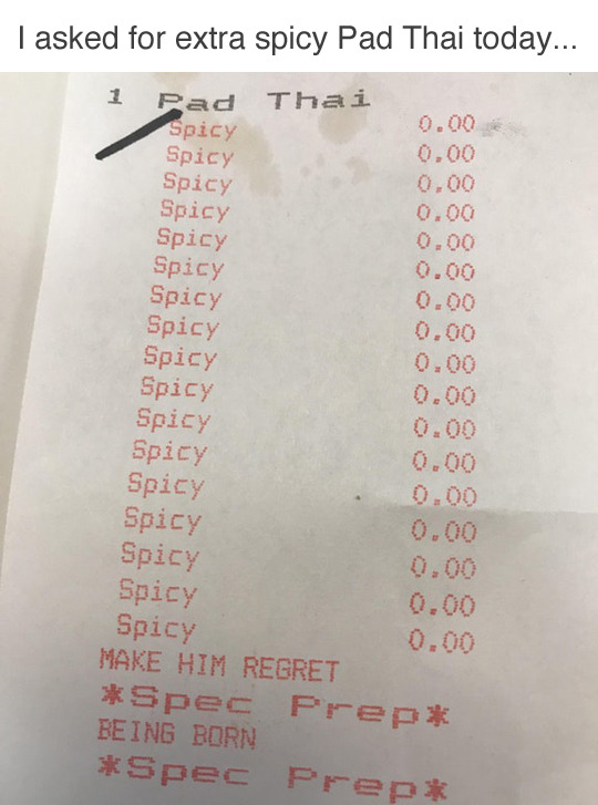 So my husband tells a story about a guy he worked with at his first job. They’d regularly go to a Thai restaurant near their office – one of those really legit places where grandma is the chef. So the guy says one day to their server, looks this girl dead in the eye, and says “You can’t make it hot enough.”