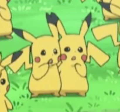 this is the part in the episode where all the female pikachus are off greeting ash’s. all the pikachus in the background are males including these two lil guys